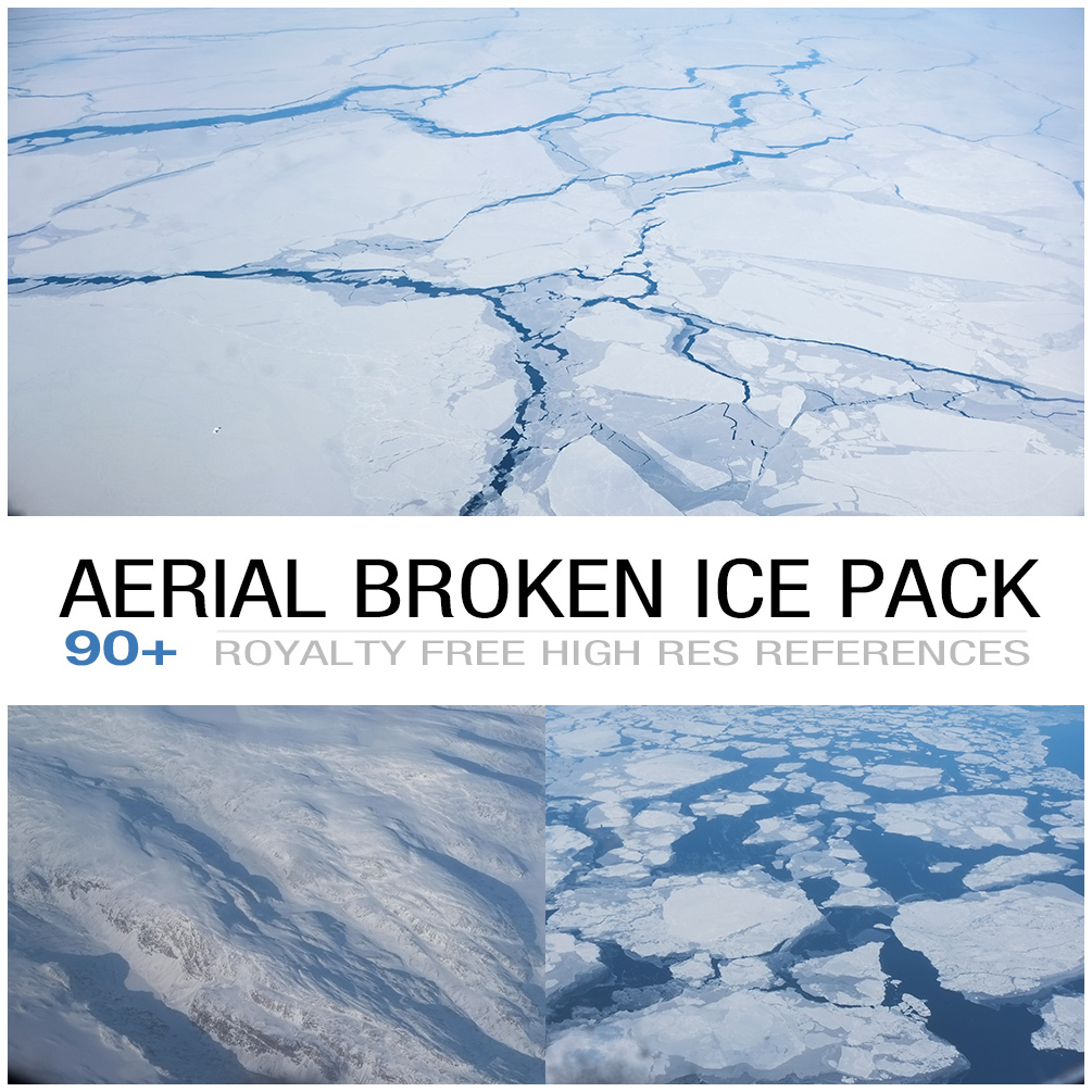 A free reference pack featuring aerial broken ice and frozen lands shot during a flight over Greenland.